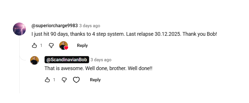 I was trapped in porn addiction for years… frustrated, ashamed, and ready to give up. Then I decided to give the 4-step system a try. Its clear, practical steps changed everything… Holy Batman, I’m on DAY 142 now!...longest streak in my life!! I’ve got massive self-respect, confidence, and I’m more productive and clear-headed than ever.